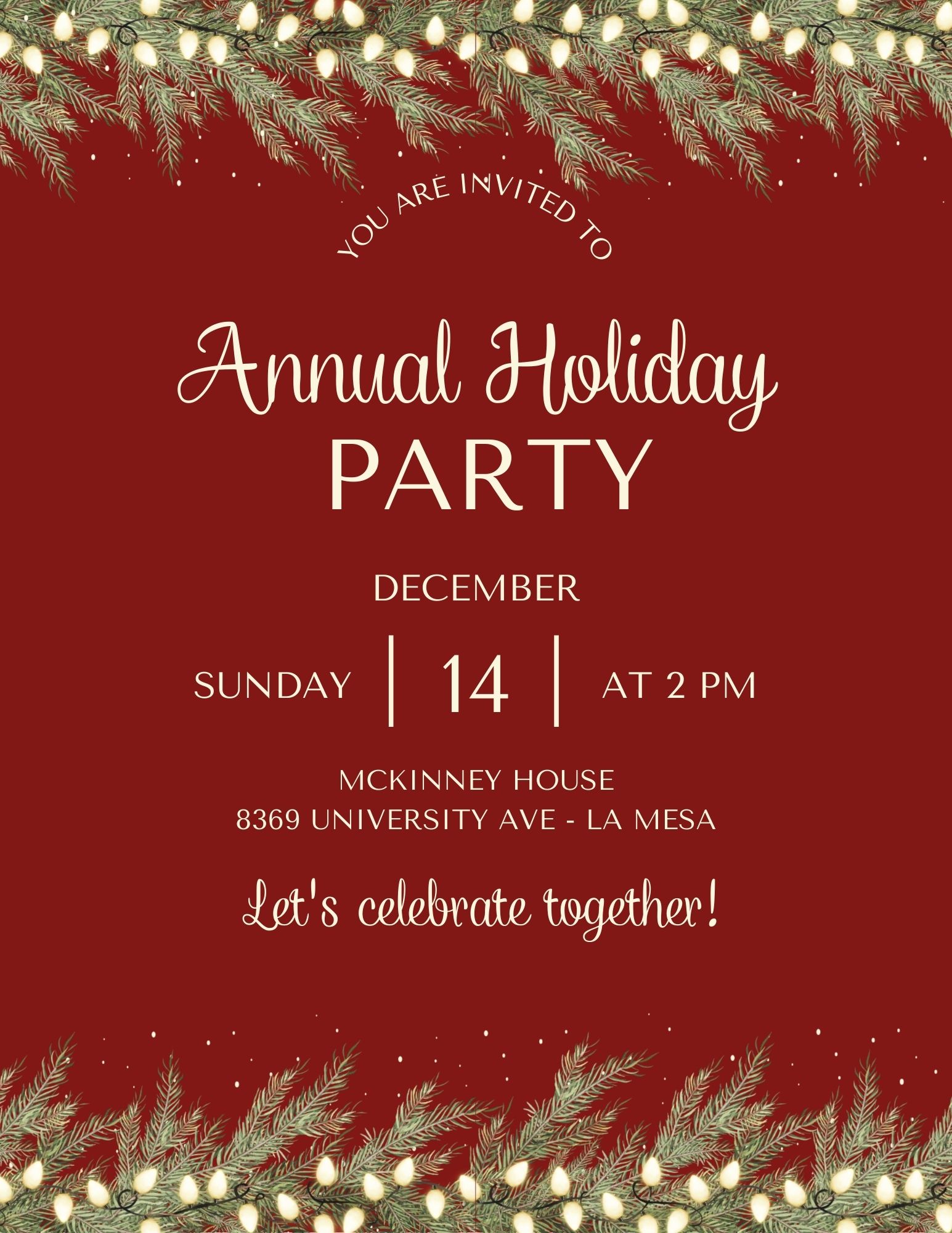 Join us at the McKinney House for our annual Holiday Party. One of the earliest traditions of our organization, the annual Holiday Party brings our community together for food, fun and fellowship.