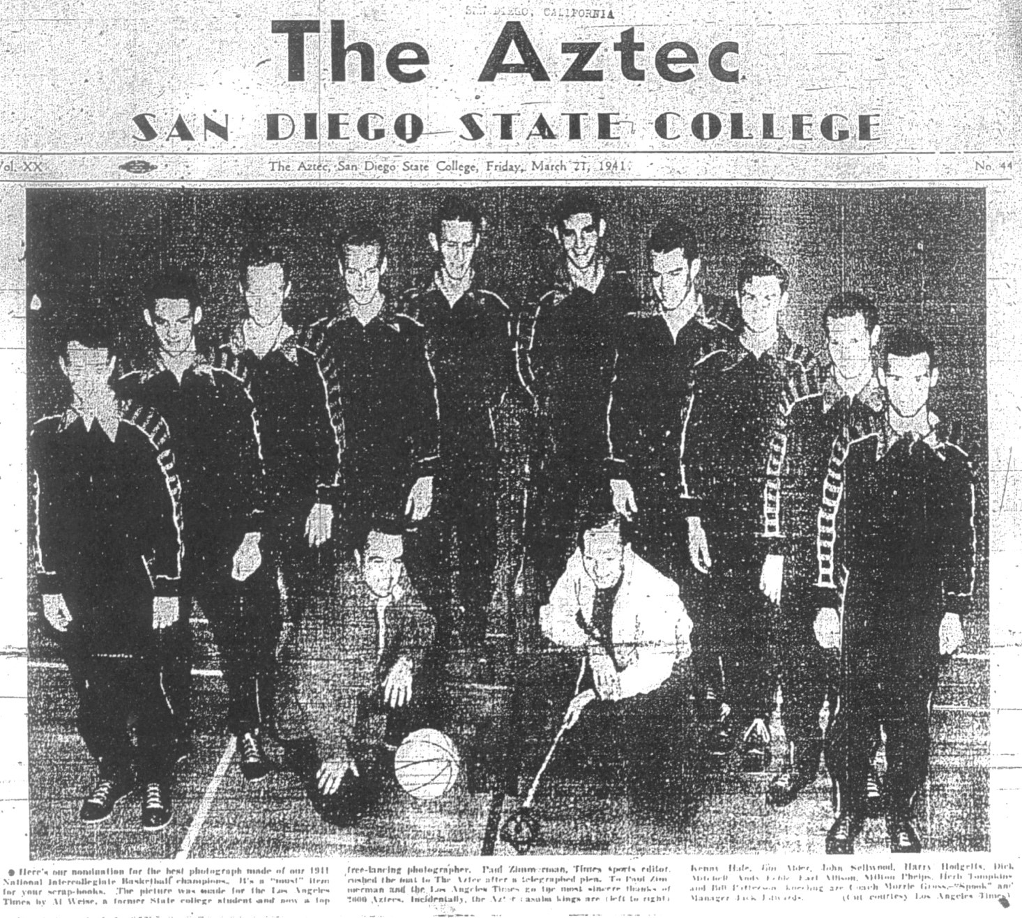 A SDSC pre-season press brochure predicted that Gross’ vision for a National tournament victory in March 1941 would clearly “wind up the greatest season in San Diego State casaba [basketball] history.”